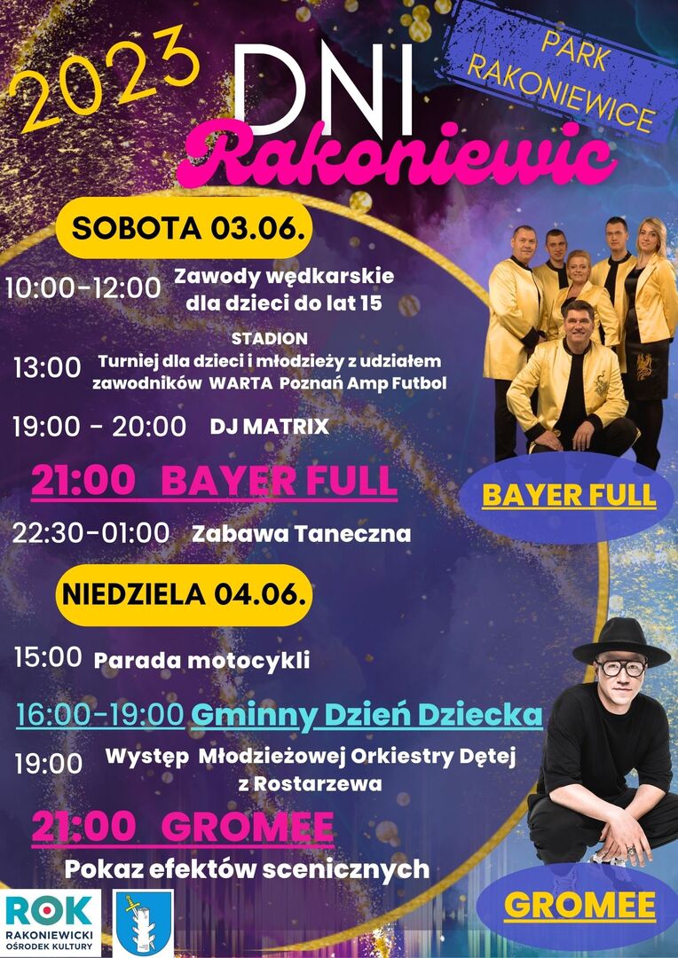 Dni Rakoniewic 😍Najbardziej wyczekiwana impreza w tym roku ! 🤩🤩Przedstawiamy tegoroczny program Dni Rakoniewic ! 🤪 Załączniki Blue & Purple Elegant Music Poster (9×13.5 cm) (1) [487.27 kB] Drukuj Kopiuj link Facebook.com X.com Data publikacji: 19.05.2023 godz. 13:46 Wyświetlono: 440 Kategoria: Aktualności Przypięta galeria Zobacz więcej Zobacz również Zobacz więcej 26.04.2023 Aktualności Uroczystości na 86 rocznicę śmierci Michała Drzymały... 25.04.2023r. odbyły się Uroczystości z okazji 86 rocznicy śmierci Michała Drzymały, które upamiętniły tego wielkiego człowieka.O 16:00 wspaniali aktorzy odegrali sztukę czytania w 3 Aktach ... 04.05.2023 Aktualności Uroczystości z okazji 3 maja Uroczystości z okazji 3 Maja w Rakoniewicach. Dzień rozpoczął się o godzinie 11:30 Mszą Świętą w kościele w Rakoniewicach. Następnie odbył się przemarsz na rynek poprowadzony przez Młodzieżową Orkiestrę... 08.05.2023 Aktualności I Wiosenny Zlot Turystyczny w Rakoniewicach Wczoraj tj. 7.05.2023r. odbył się pierwszy Zlot Turystyczny w Rakoniewicach który zebrał ponad 200 osób ! Razem z SKKT „Lotospar” Rakoniewice dziękujemy wszystkim grupom, które...