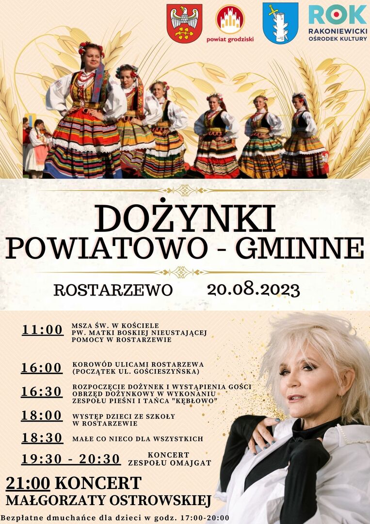 Dożynki Powiatowo - Gminne Zapraszamy ! Drukuj Kopiuj link Facebook.com X.com Data publikacji: 17.07.2023 godz. 09:54 Wyświetlono: 299 Kategoria: Aktualności Przypięta galeria Zobacz więcej Zobacz również Zobacz więcej 07.06.2023 Aktualności Dni Rakoniewic - 2023 Dni Rakoniewic, cóż to był za fantastyczny weekend !!😍 Oficjalnie Sobotę rozpoczęły zawody wędkarskie dla dzieci, oraz turniej piłkarski dla dzieci i młodzieży z udziałem zawodników... 12.06.2023 Aktualności Wakacje z ROK-iem 2023! Uprzejmie informujemy, że płatności za udział dzieci w ''Wakacjach w ROKu'' należy dokonać do piątku 16.06.23r. W przypadku braku wpłaty w wyznaczonym terminie dziecko zostanie wykreślone z listy uczestników.... 03.07.2023 Aktualności Kabaret Chatelet W piątkowy wieczór 23 czerwca gościliśmy na naszym dziedzińcu Kabaret - Formacja Chatelet. Ich świetny występ zapisze się w pamięci wszystkich z pewnością na długo!! Pomimo lekkiego deszczu publiczność...