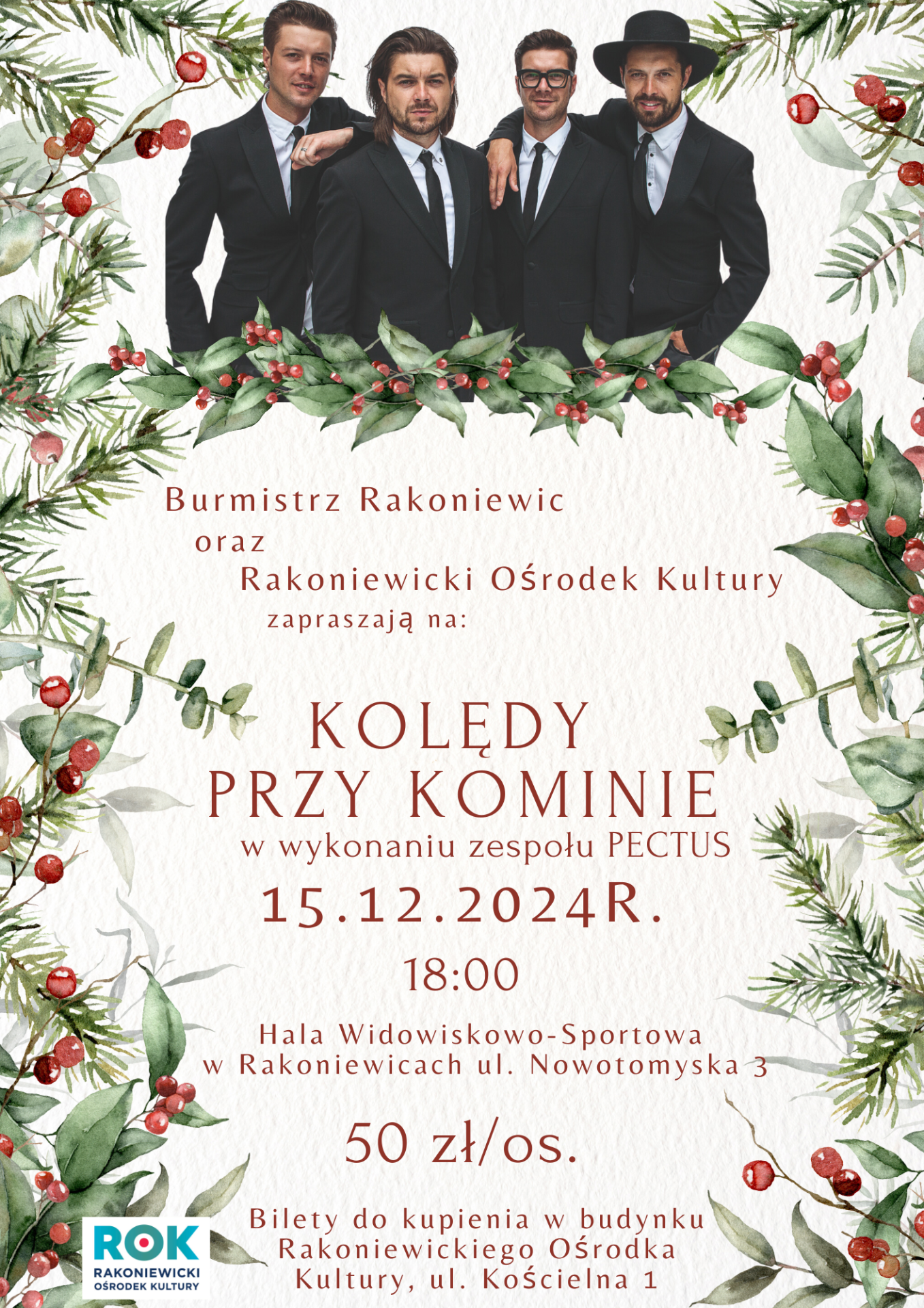 15 grudnia na Hali Widowiskowo-Sportowej odbędzie się koncert zespołu PECTUS pt. "Kolędy przy kominie".
