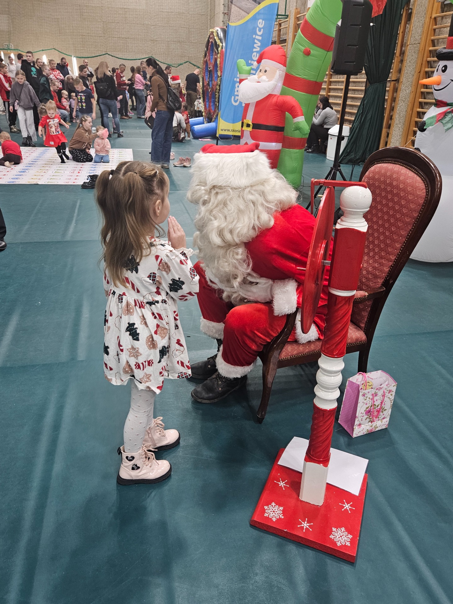 Główną atrakcją na którą wszyscy czekali było spotkanie ze świętym Mikołajem! Zainteresowanie było ogromne! Dzieci mogły zrobić sobie zdjecie oraz poprosić Mikołaja o prezent pod choinkę