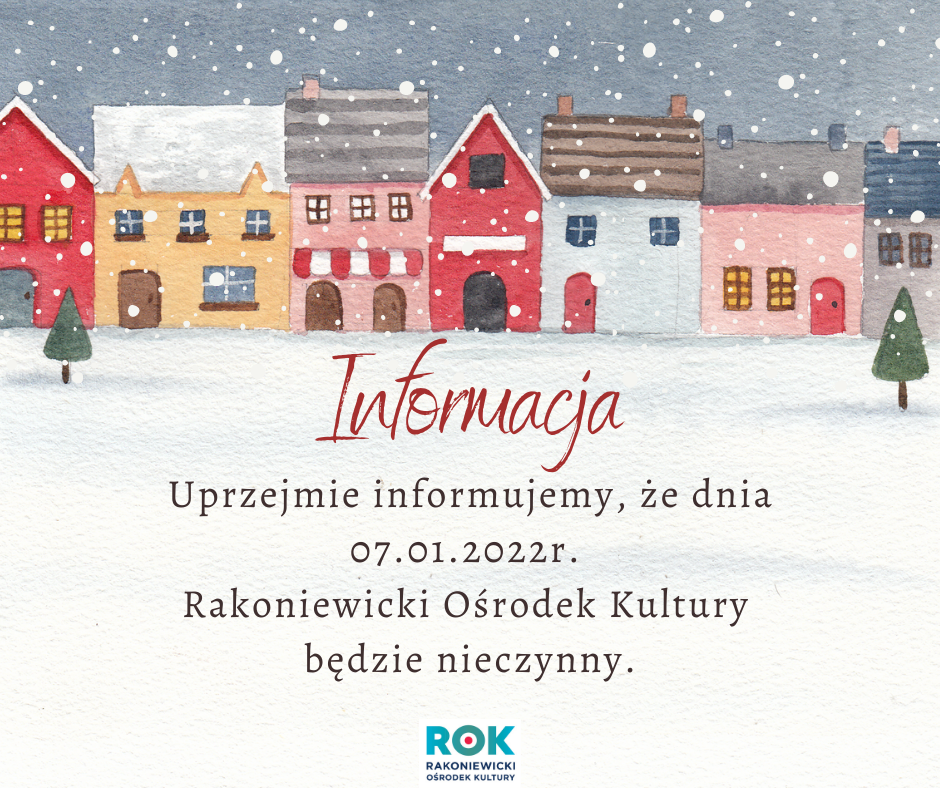 Uprzejmie informujemy, że dnia 07.01.2022r. Rakoniewicki O środek Kultury będzie nieczynny.