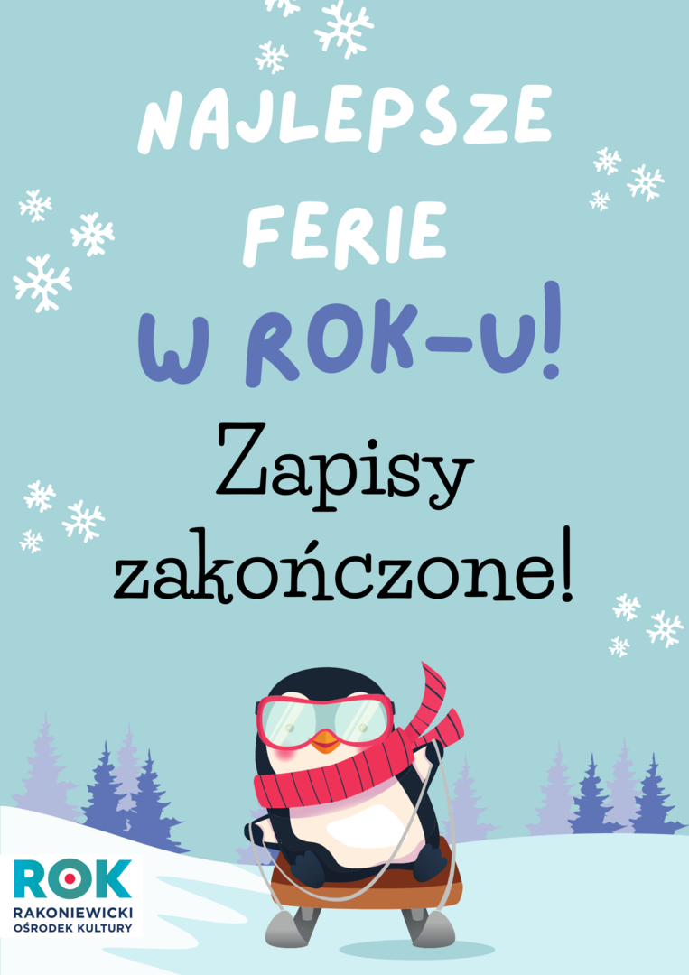 Zapisy zakończone! Zapisy na "Najlepsze Ferie w ROK-u!" zakończone! Do zobaczenia na zajęciach! Załączniki Zapisy na Najlepsze Ferie w ROK-u! zakończone! Do zobaczenia na zajęciach! [105.88 kB] Drukuj Kopiuj link Facebook.com X.com Data publikacji: 04.01.2022 godz. 14:33 Wyświetlono: 210 Kategoria: Komunikaty Zobacz również Zobacz więcej 15.12.2021 Komunikaty "PUSZKI NA GROSZAKI" JUŻ CZEKAJĄ NA ODBIÓR ! 03.01.2022 Komunikaty Informacja 07.01.2022r. Informacja 07.01.2022r. Uprzejmie informujemy, że dnia 07.01.2022r. Rakoniewicki O środek Kultury będzie nieczynny. 04.01.2022 Komunikaty Ważna informacja dla uczestników sekcji! Ważna informacja dla uczestników sekcji! W czasie trwania ferii zimowych zajęcia sekcyjne nie będą się odbywały.