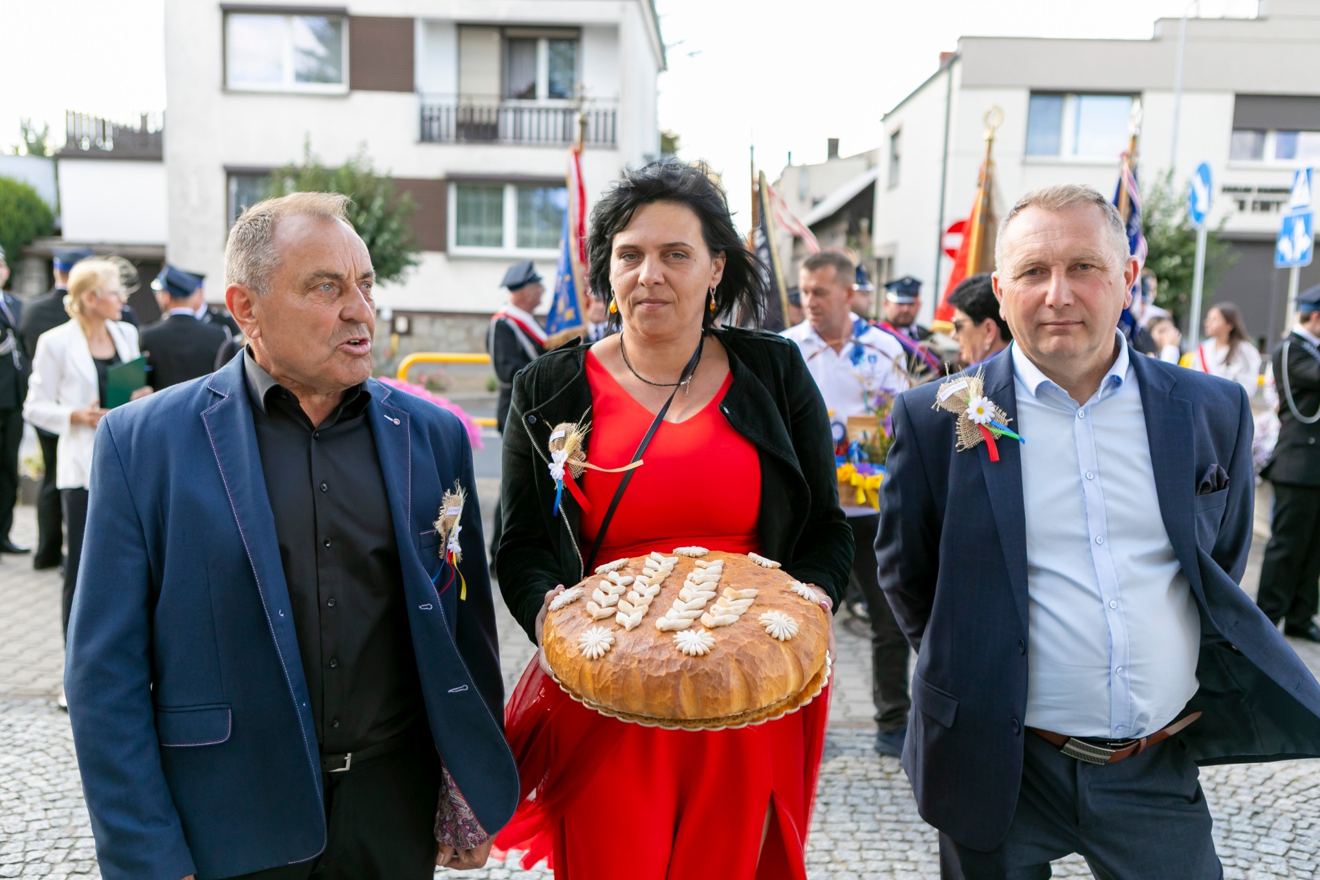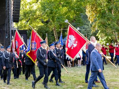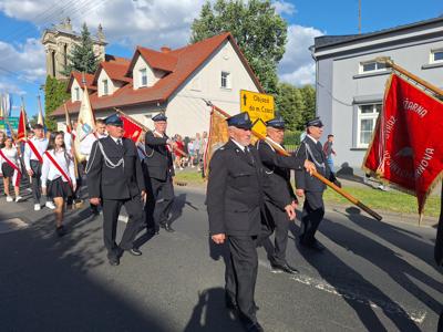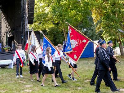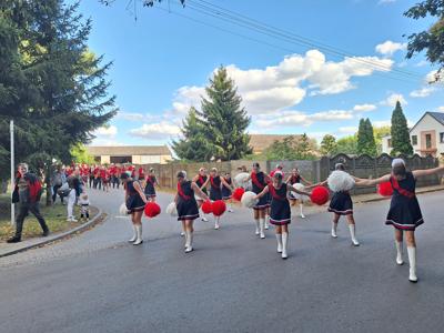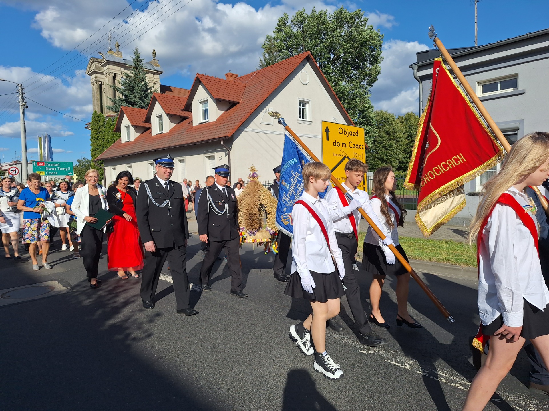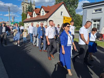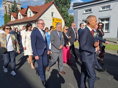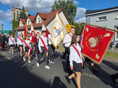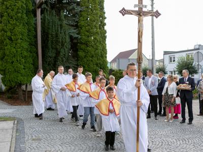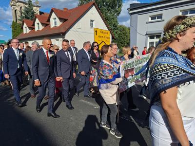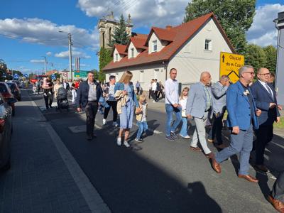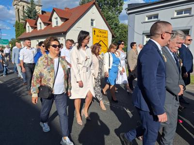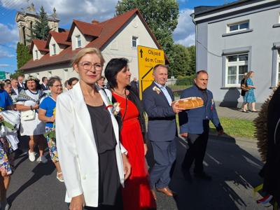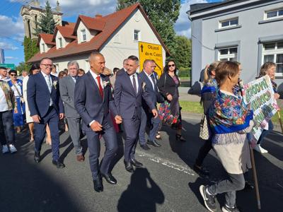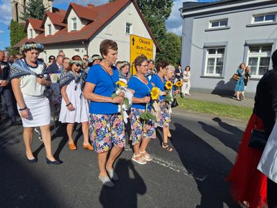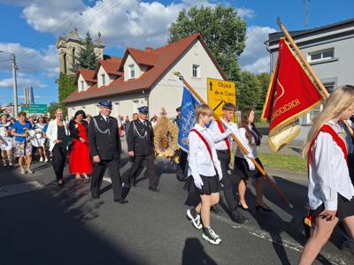 Po mszy, uczestnicy przeszli w barwnym korowodzie do Parku Krajobrazowego, przechodząc przez ulicę Strzelecką, Cmentarną, aż do Dębowej. W procesji wzięły udział przedstawicielki Kół Gospodyń Wiejskich z gminy, sztandary, dyrektorzy szkół, gospodarze oraz zaproszeni goście.