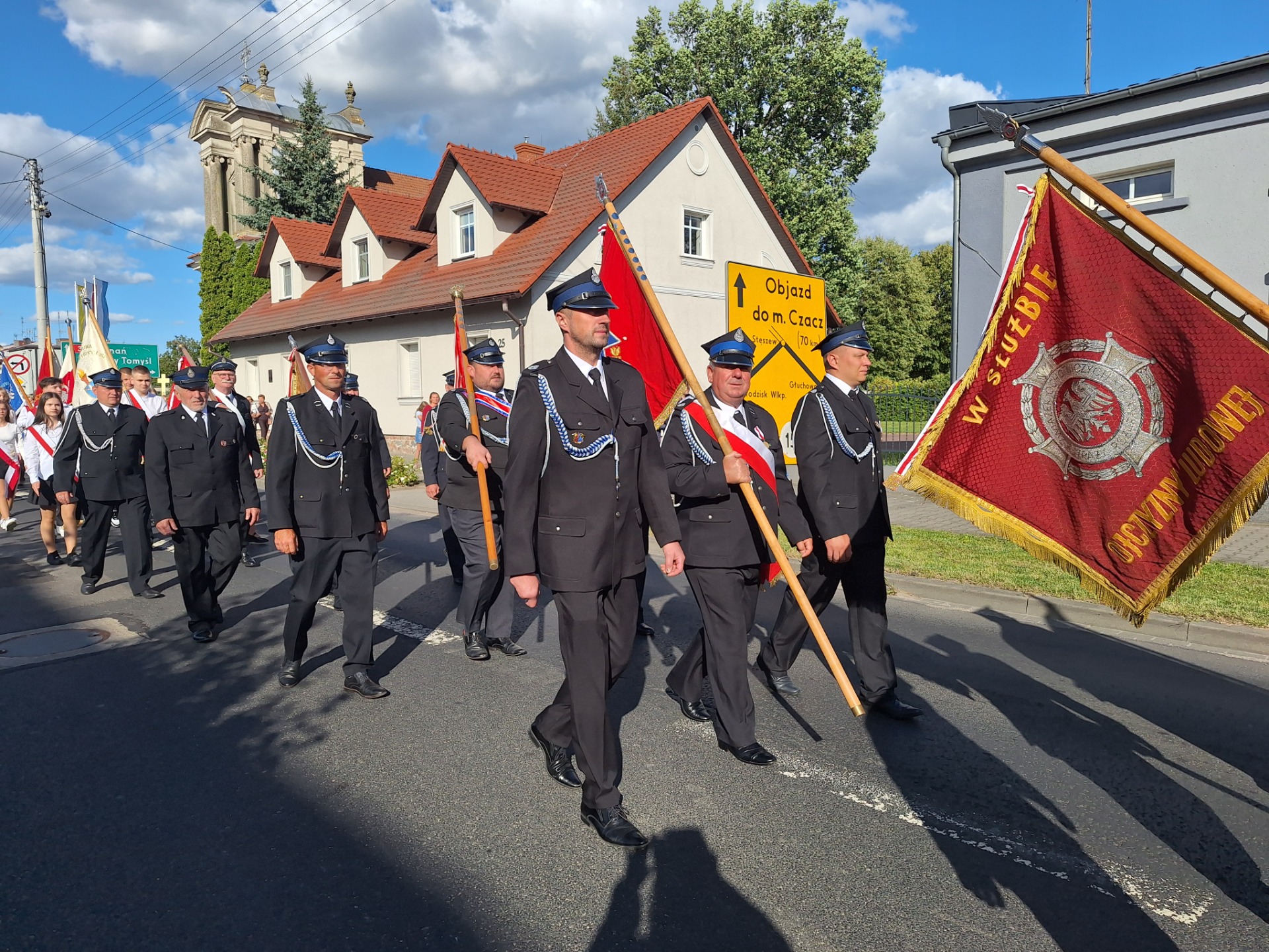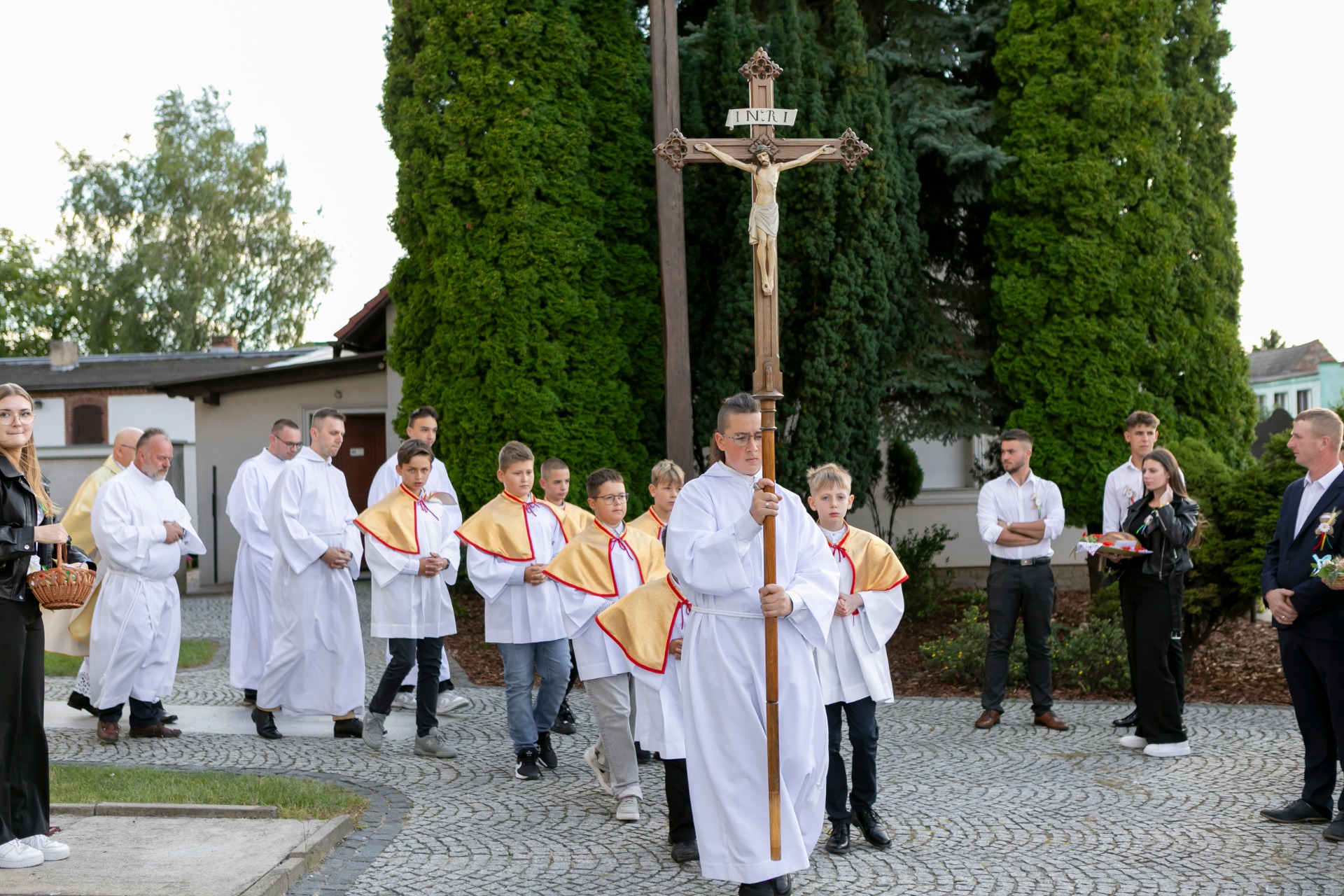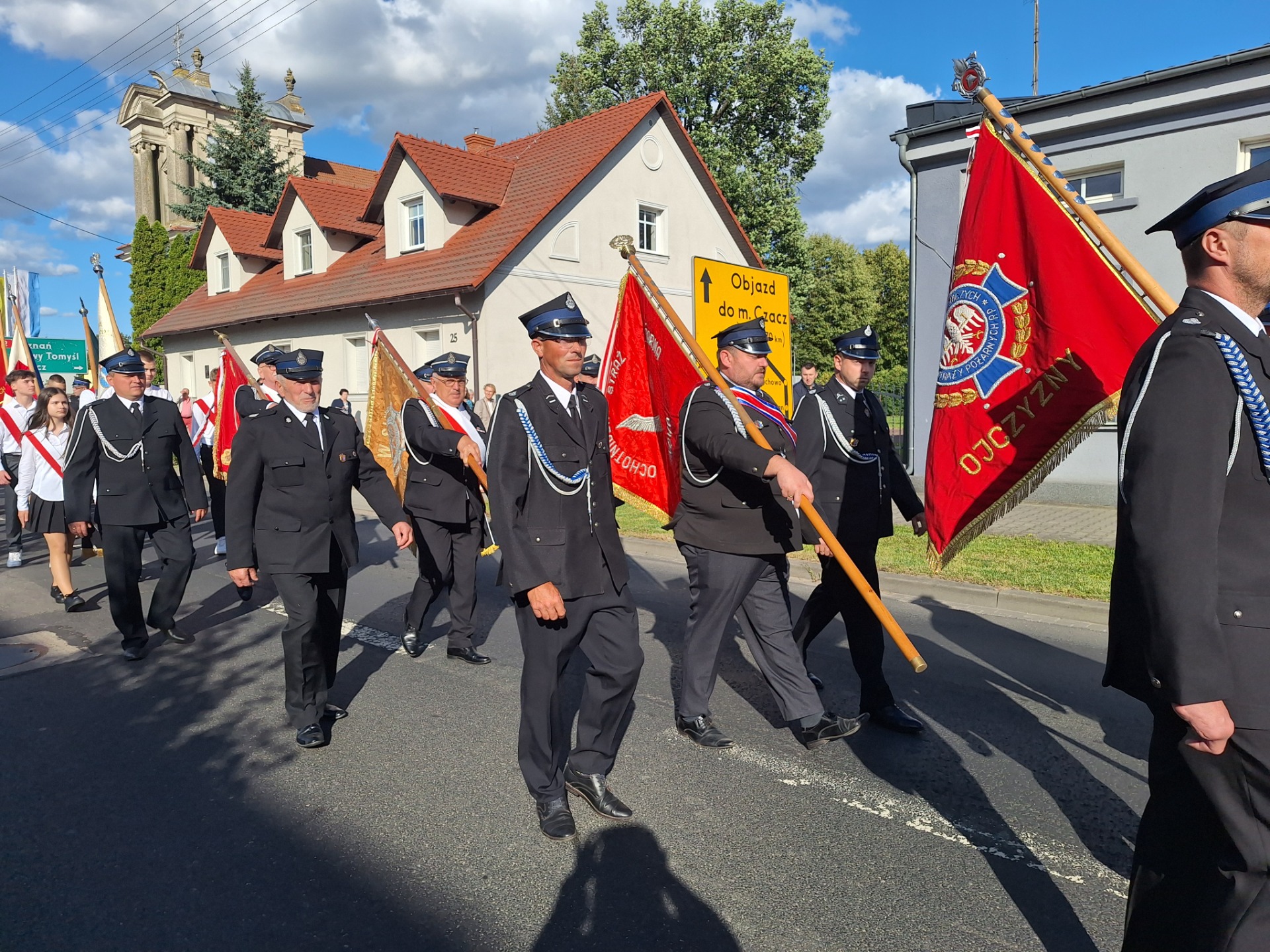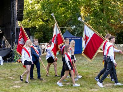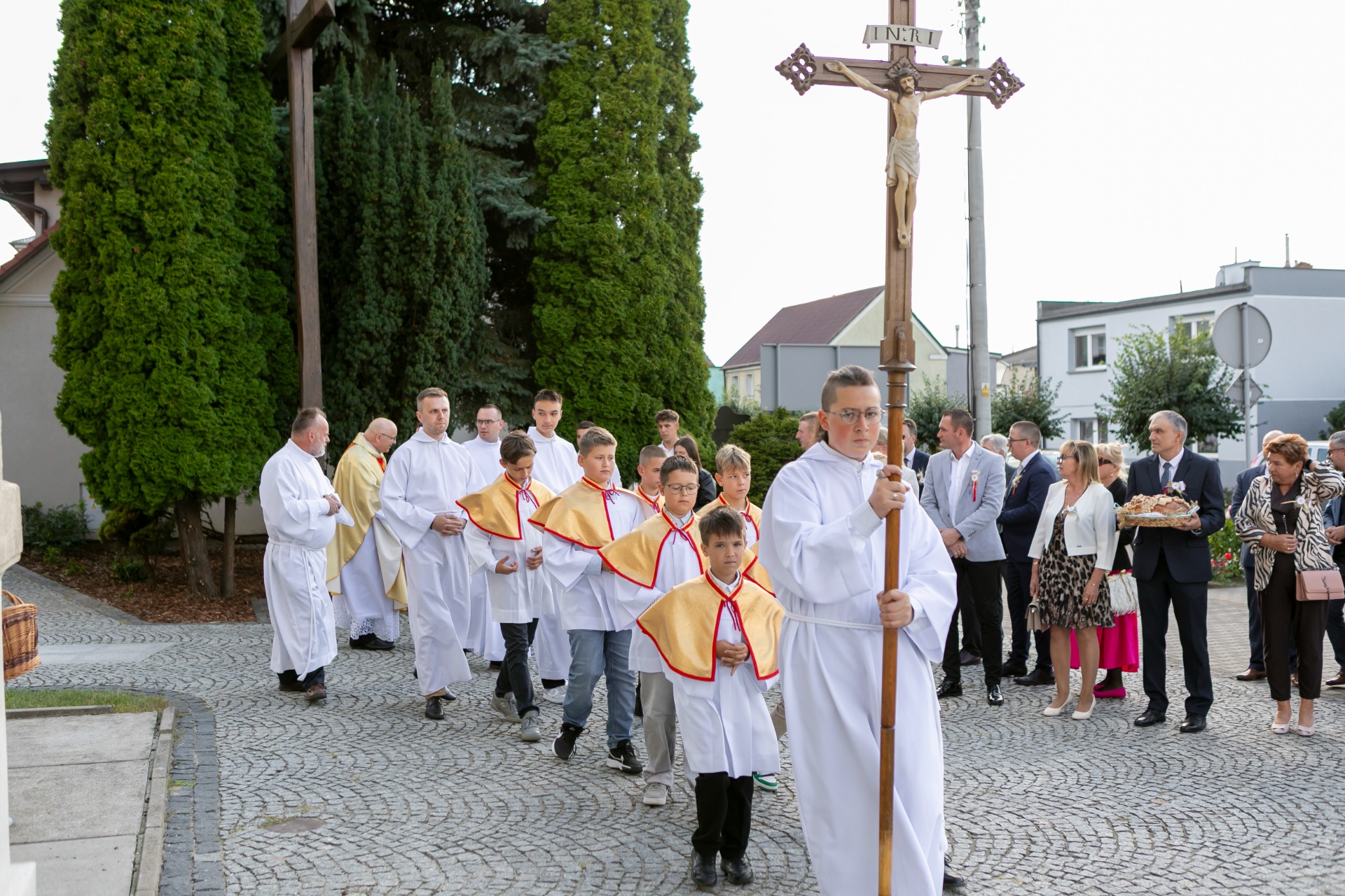 Po mszy, uczestnicy przeszli w barwnym korowodzie do Parku Krajobrazowego, przechodząc przez ulicę Strzelecką, Cmentarną, aż do Dębowej. W procesji wzięły udział przedstawicielki Kół Gospodyń Wiejskich z gminy, sztandary, dyrektorzy szkół, gospodarze oraz zaproszeni goście.