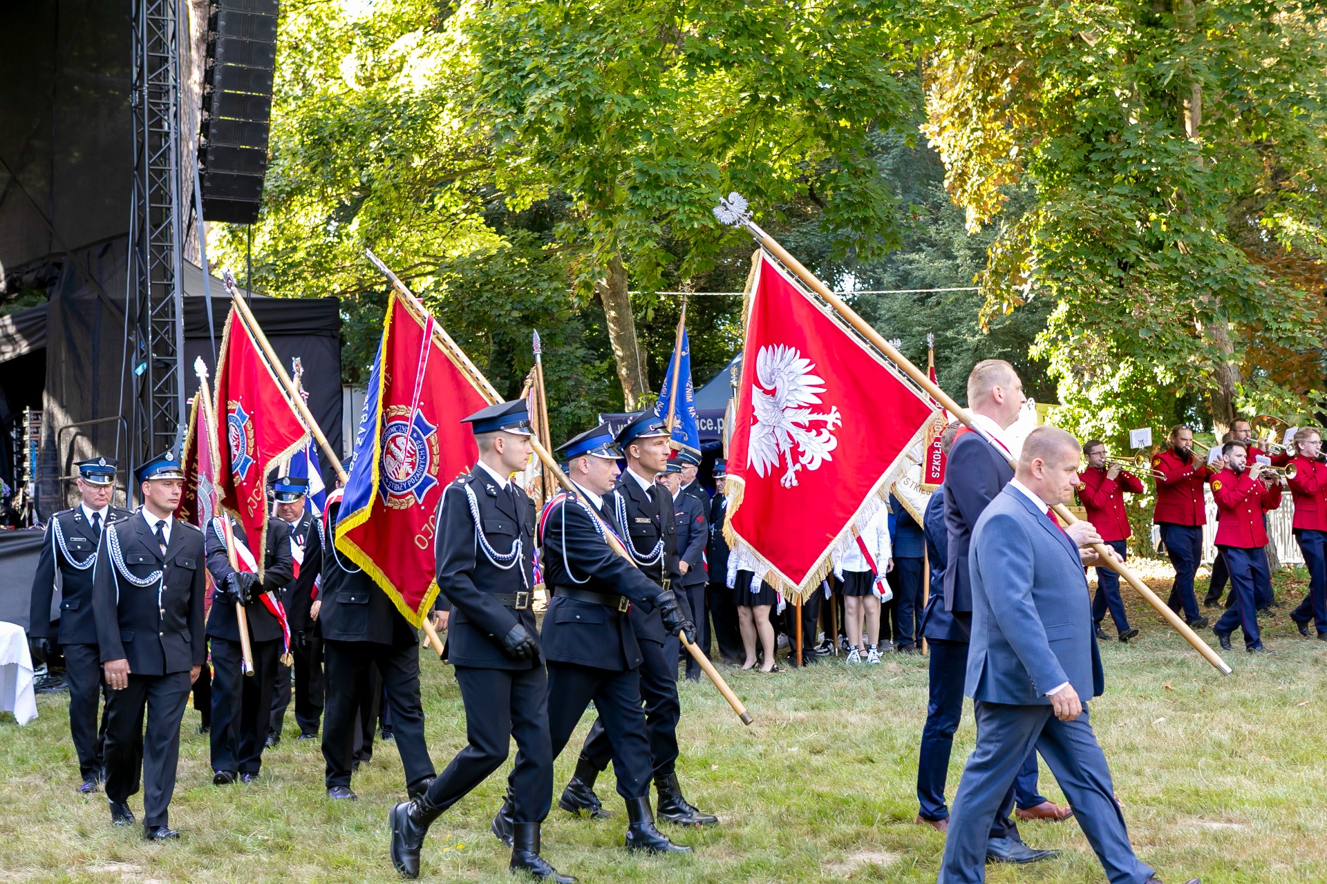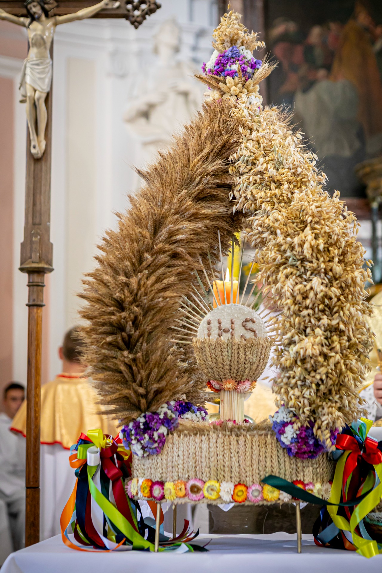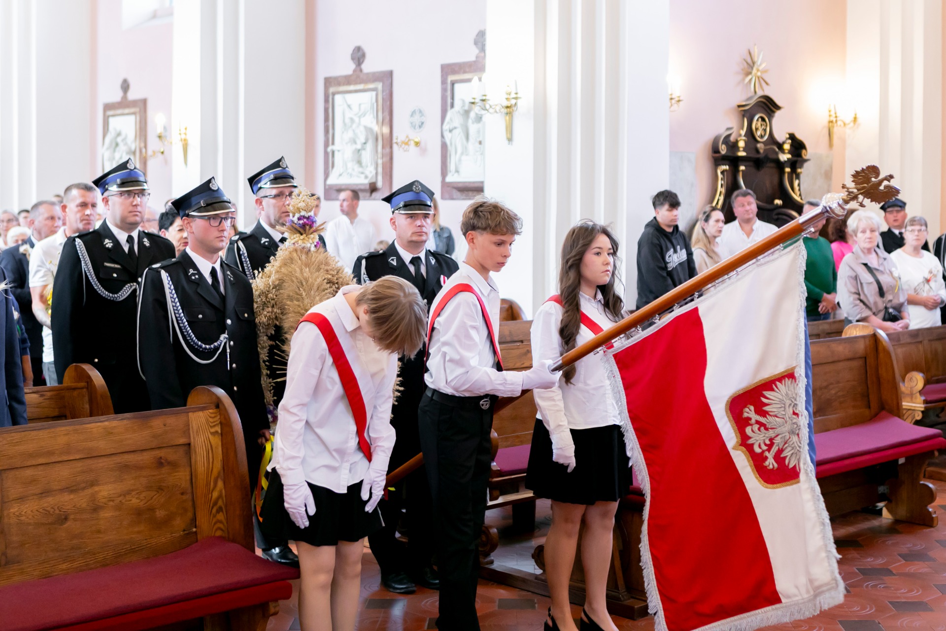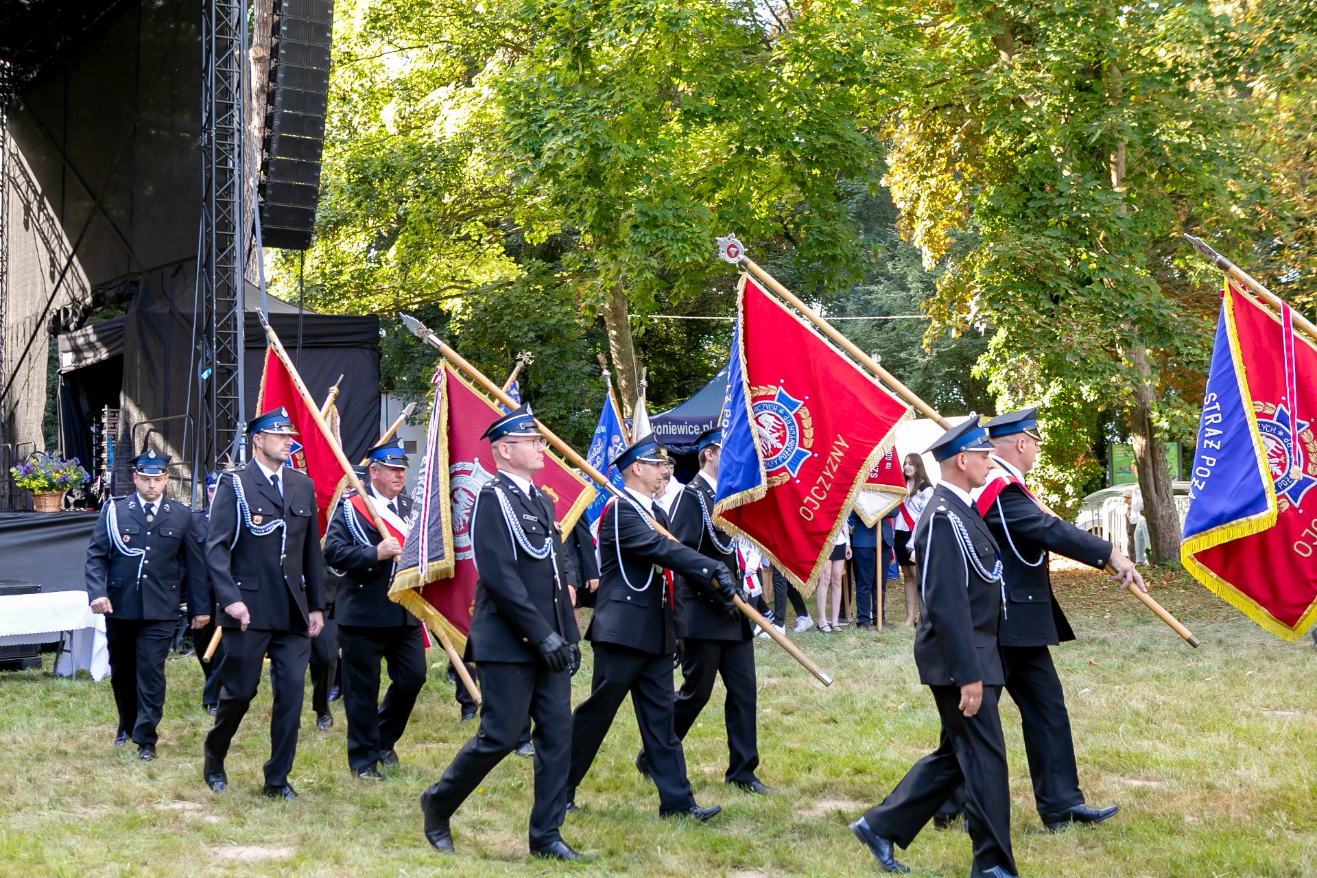 Po mszy, uczestnicy przeszli w barwnym korowodzie do Parku Krajobrazowego, przechodząc przez ulicę Strzelecką, Cmentarną, aż do Dębowej. W procesji wzięły udział przedstawicielki Kół Gospodyń Wiejskich z gminy, sztandary, dyrektorzy szkół, gospodarze oraz zaproszeni goście.