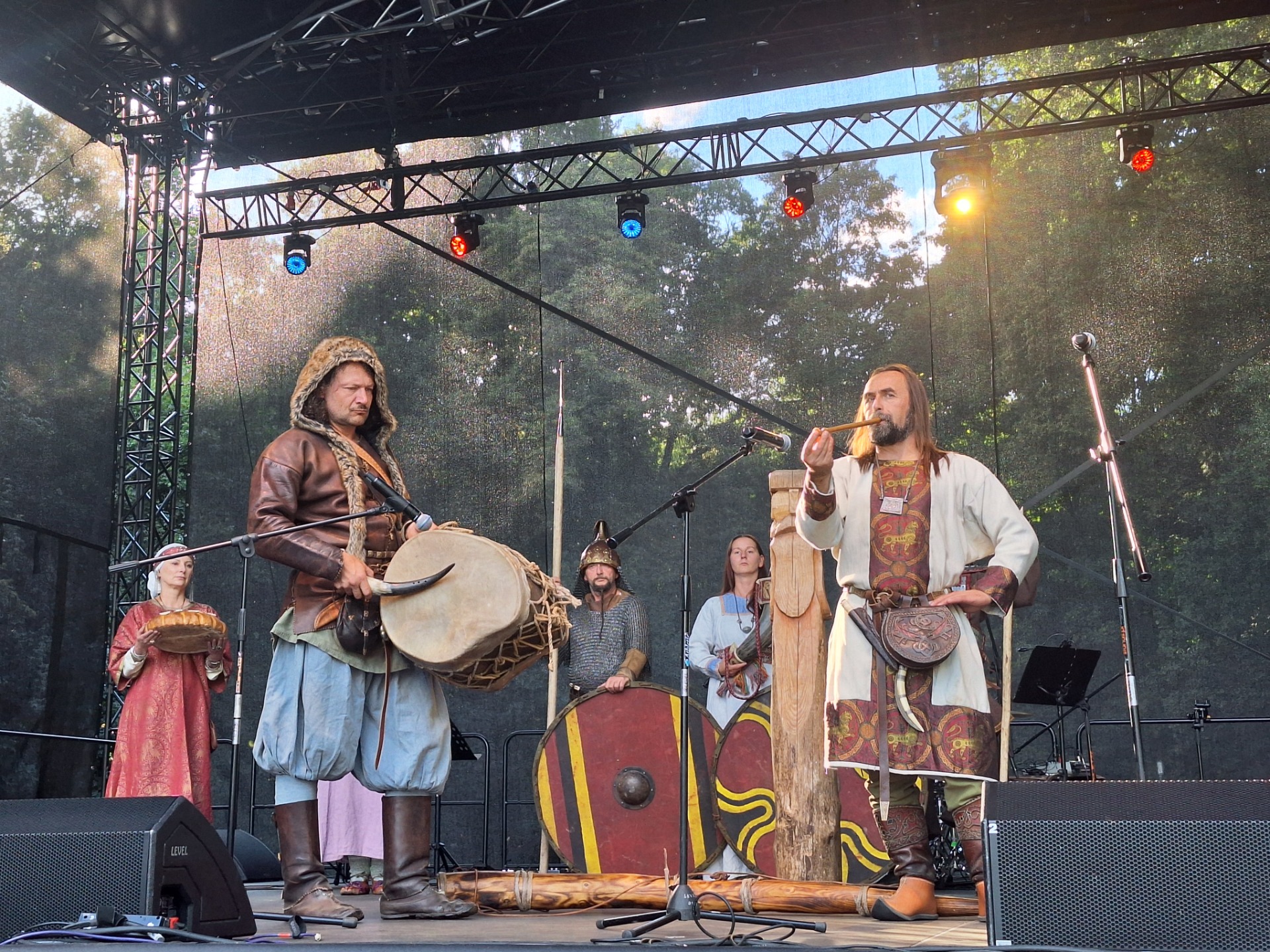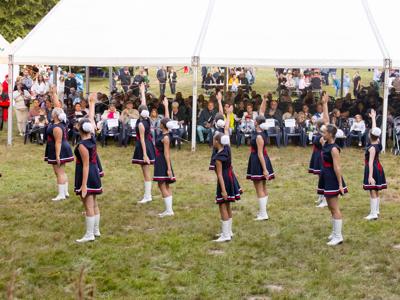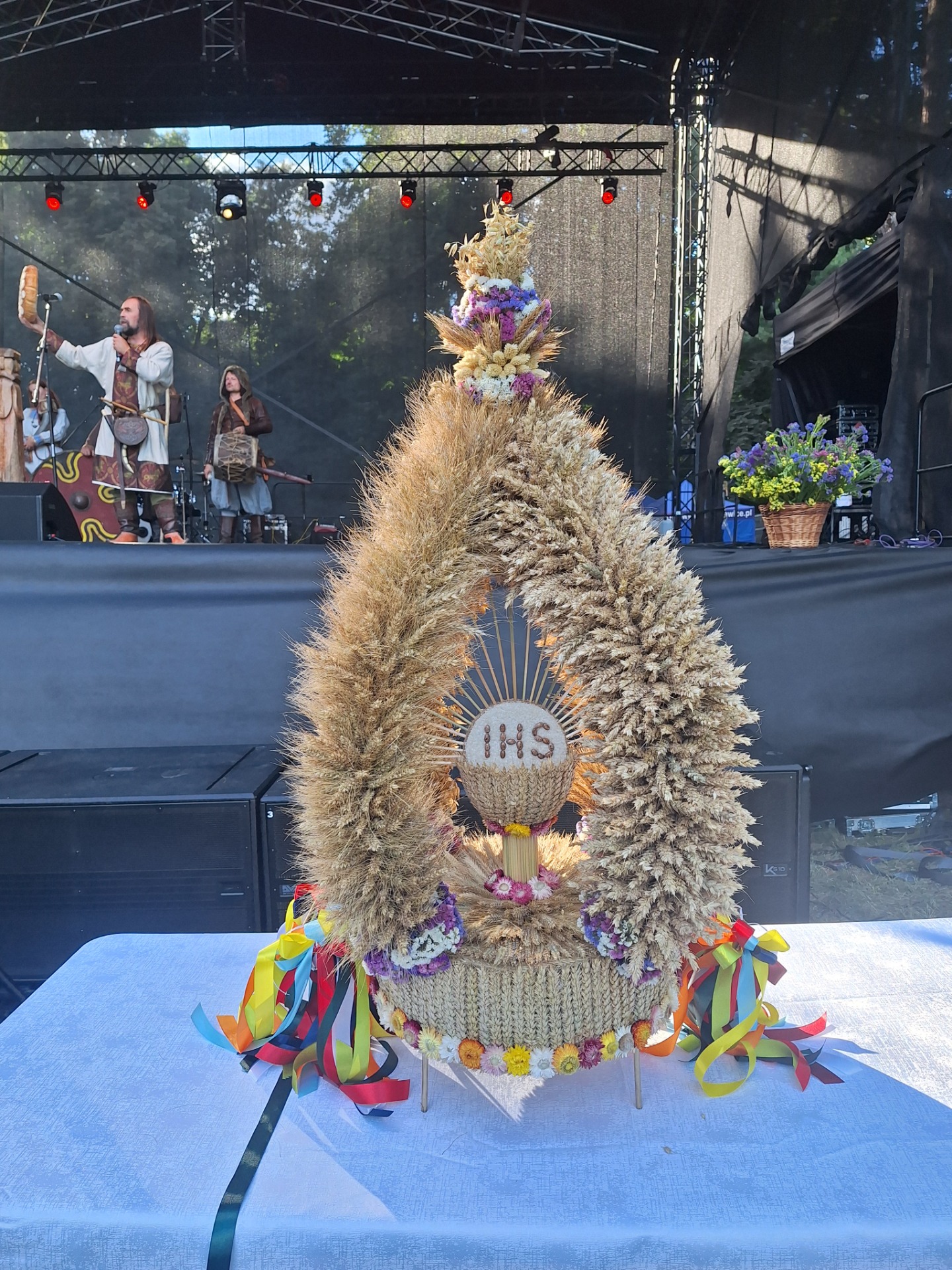 Korowodem doszliśmy do Parku gdzie nastąpiło uroczyste rozpoczęcie i obrzęd dożynkowy wykonany przez grupę wojów piastowskich Jantar, podczas którego mieszkańcy Rakoniewic wzięli udział w tradycyjnych obrzędach związanych z zakończeniem zbiorów. Wspaniale zaprezentowały się dzieci z przedszkola oraz uczniowie szkoły podstawowej, którzy przygotowali występy artystyczne. Wszyscy uczestnicy jak i goście zostali poczęstowani bigosem i kiełbasą, co dodatkowo podkreśliło rodzinny charakter tego wydarzenia.