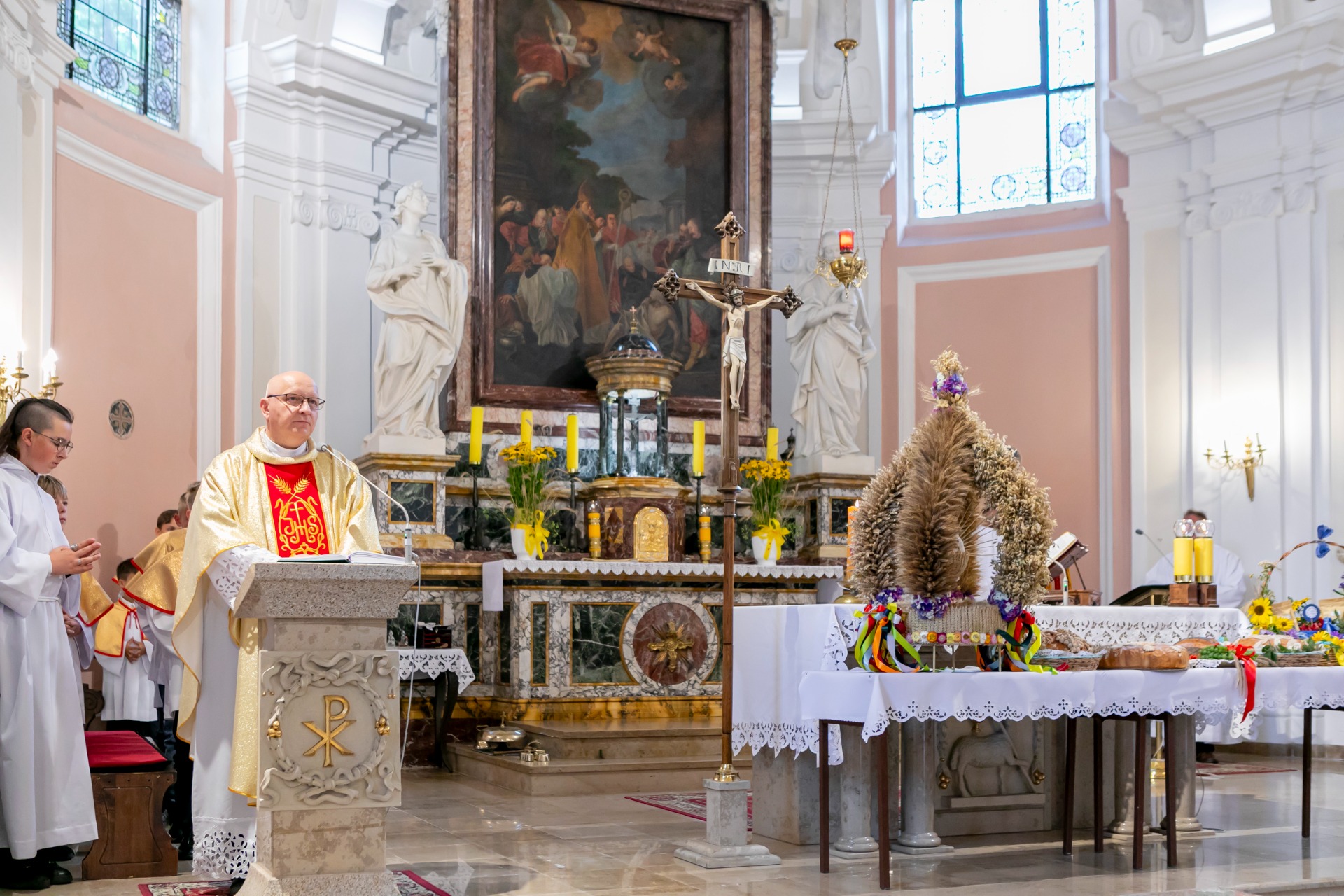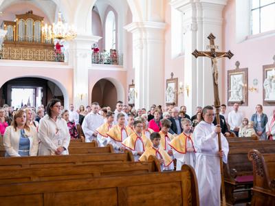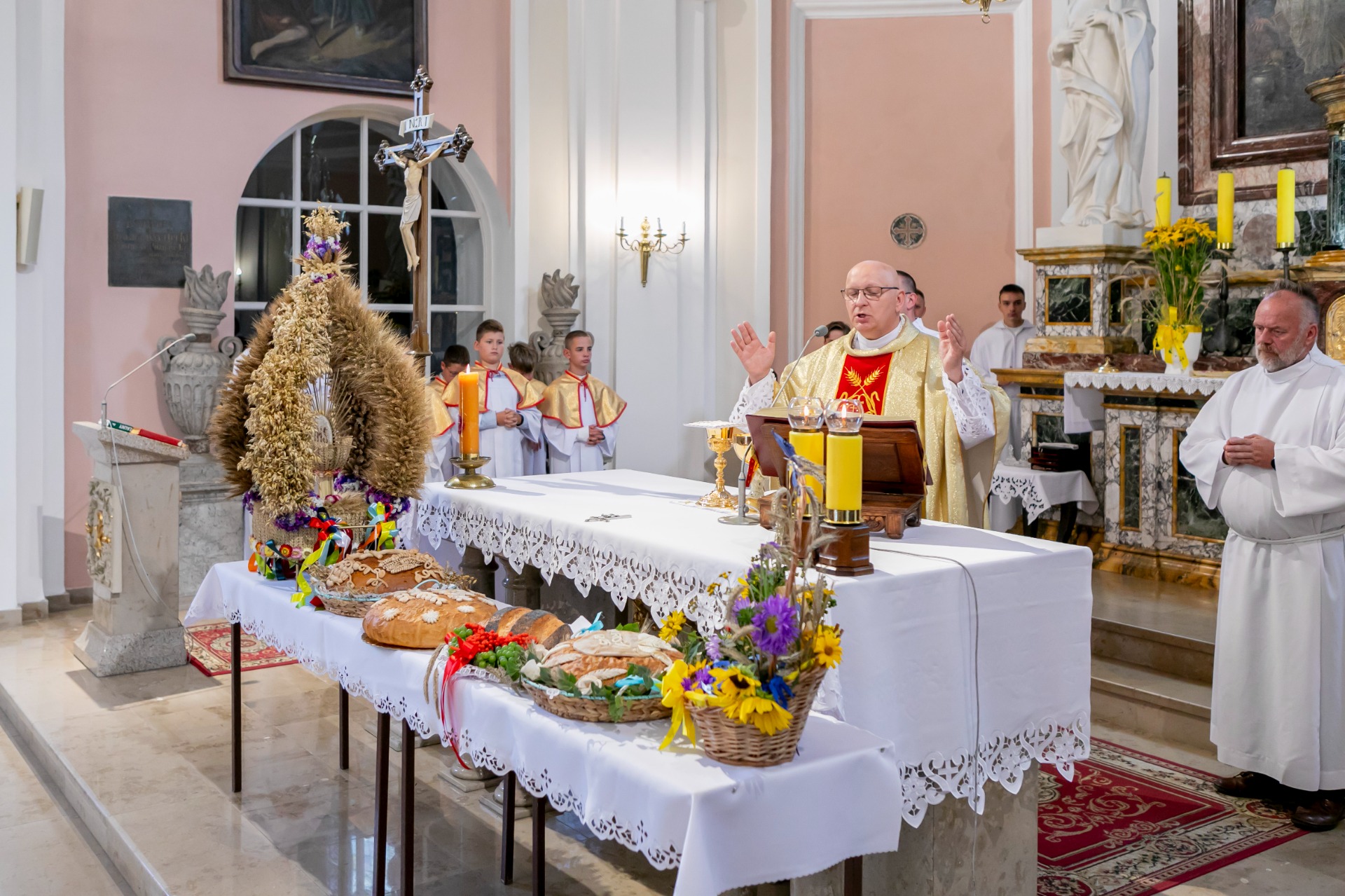 Dożynki rozpoczęły się uroczysta Mszą Świętą w Kościele pw. św. Marcina i św. Stanisława Bpa w Rakoniewicach.