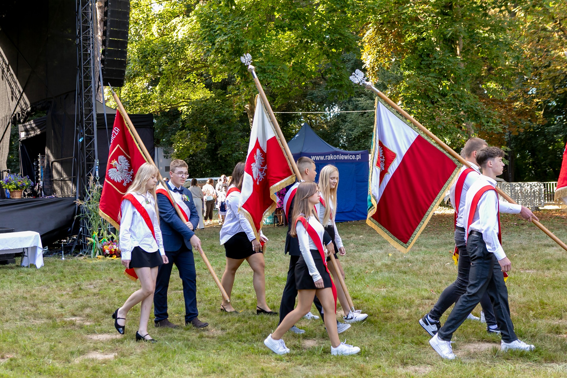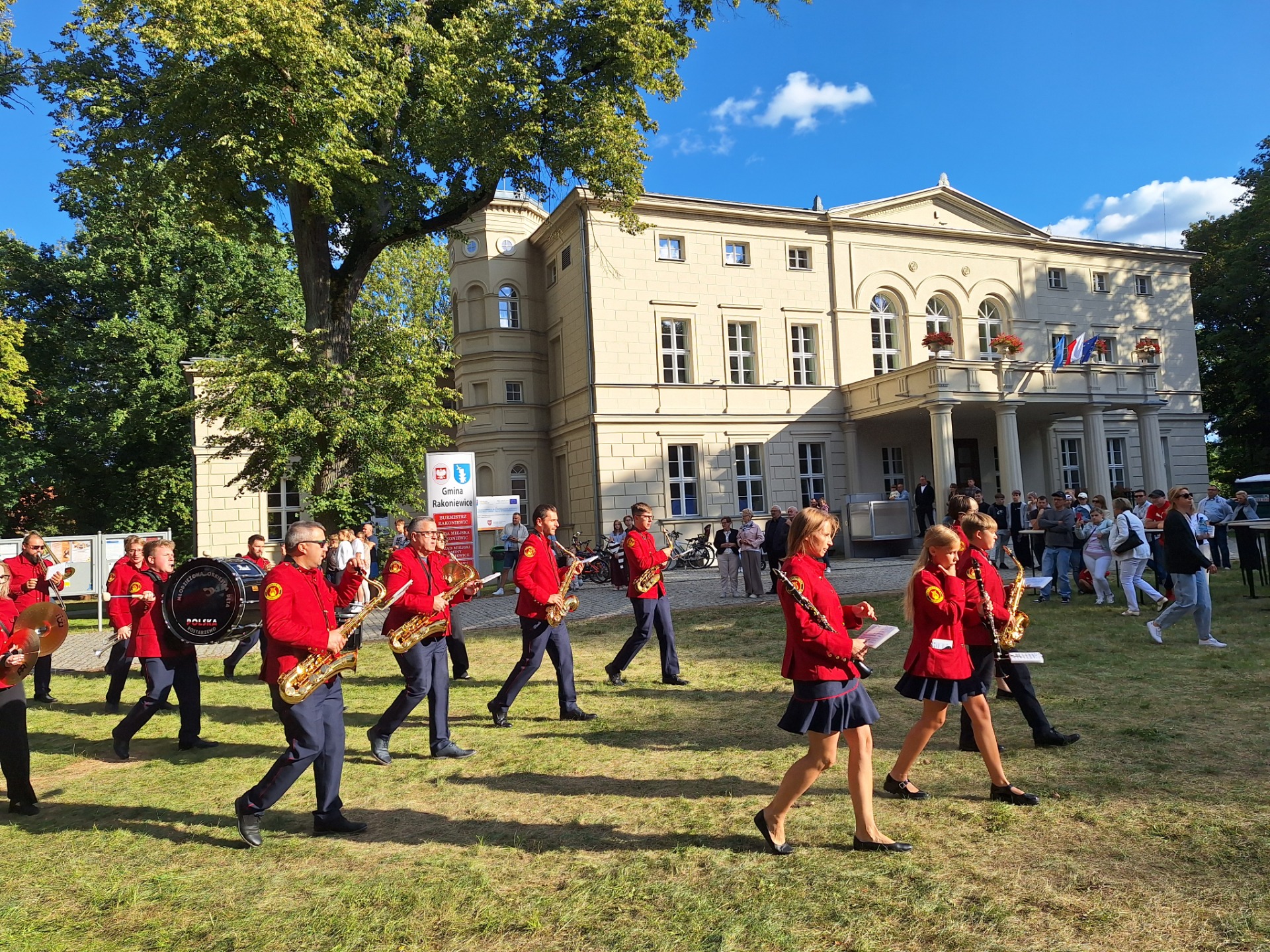 W dniu 24.08.2025r. mieszkańcy gminy Rakoniewice oraz goście uczestniczyli w wyjątkowym wydarzeniu - Dożynkach Gminno-Parafialnych, które odbyły się w malowniczym Parku Krajobrazowym w Rakoniewicach. Wydarzenie, zorganizowane przez Burmistrza Rakoniewic oraz Proboszcza Parafii św. Marcina i św. Stanisława Bpa, przyciągnęło wielu mieszkańców oraz odwiedzających, którzy wzięli udział w tradycyjnych obchodach dożynek.