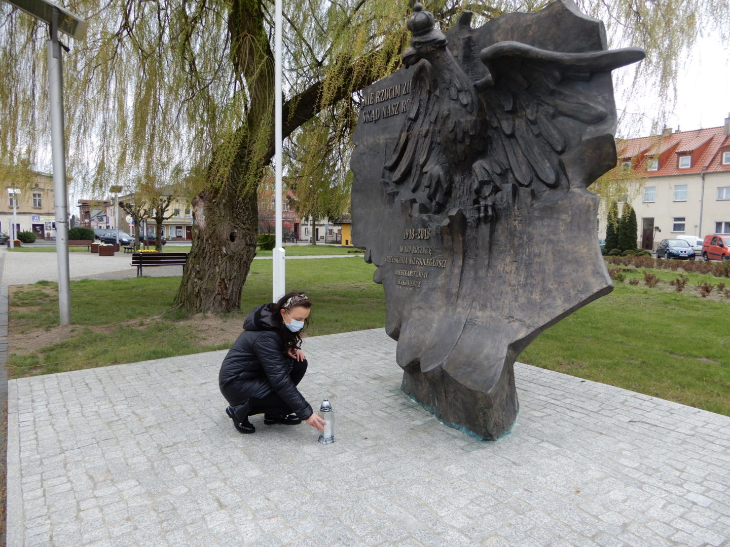 Z tej okazji Szanowna Pani Dyrektor Rakoniewickiego Ośrodka Kultury Gizela Ziółkowska przekazała pod Pomnik Pamięci i Wolności symboliczny znicz w celu okazania wdzięczności dla historii Naszego kraju