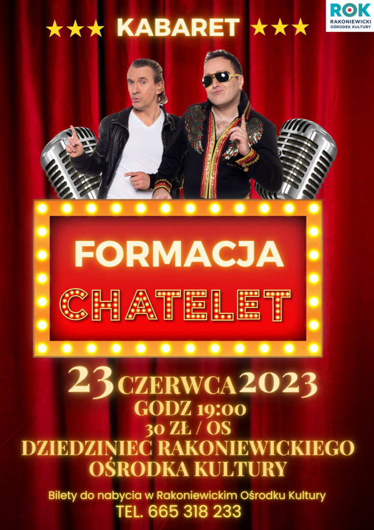 Kabaret Chatelet Kiedy: 23.06.2023 od 19:00 do 20:00 Kategoria: Kultura Kabaret Impreza płatna Impreza tylko dla dorosłych Lokalizacja: Kościelna 1, Rakoniewice, grodziski, Dziedziniec Rakoniewickiego Ośrodka Kultury Cena: 30 Kopiuj link Facebook.com X.com Zobacz również Zobacz wszystkie 03.06.2023 Konkursy Zawody Wędkarskie dla dzieci 04.06.2023 Kultura Parada motocykli 04.06.2023 Festyny, pikniki Dzień Dziecka 2023