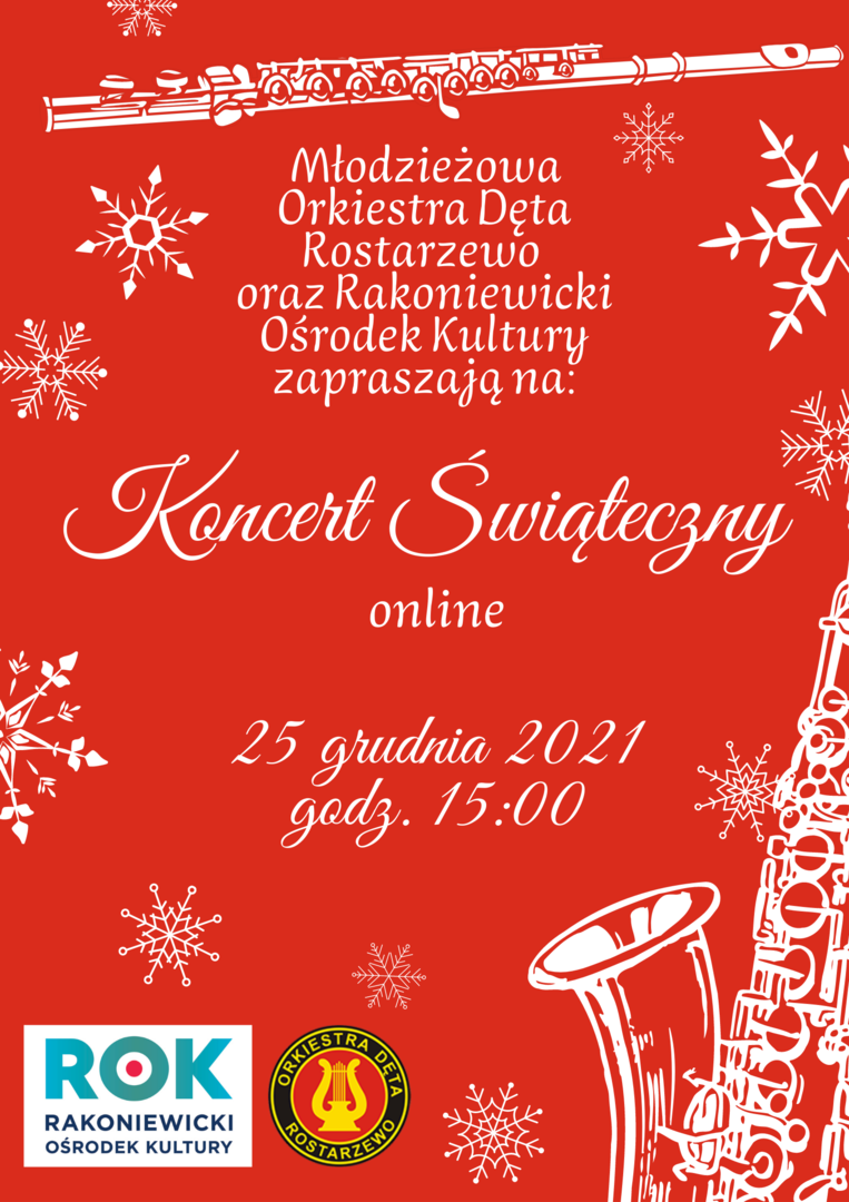 Młodzieżowa Orkiestra Dęta Rostarzewo oraz Rakoniewicki Ośrodek Kultury zapraszają na Koncert Świąteczny online, który odbędzie się 25 grudnia 2021r. o godzinie 15:00.